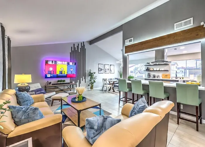 Die Villa in Las Vegas liegt im Stadtviertel Südlich des Las Vegas Strip, 10 Fahrminuten vom Welcome to Fabulous Las Vegas Schild entfernt. The Little Church of the West ist 4,1 km von der Unterkunft entfernt und der Flughafen McCarran International ist 5 km von der Villa entfernt. Die Villa Elysian liegt in einer Entfernung von etwa 15 Autominuten von einem familienfreundlichen Ziel wie dem High Roller.